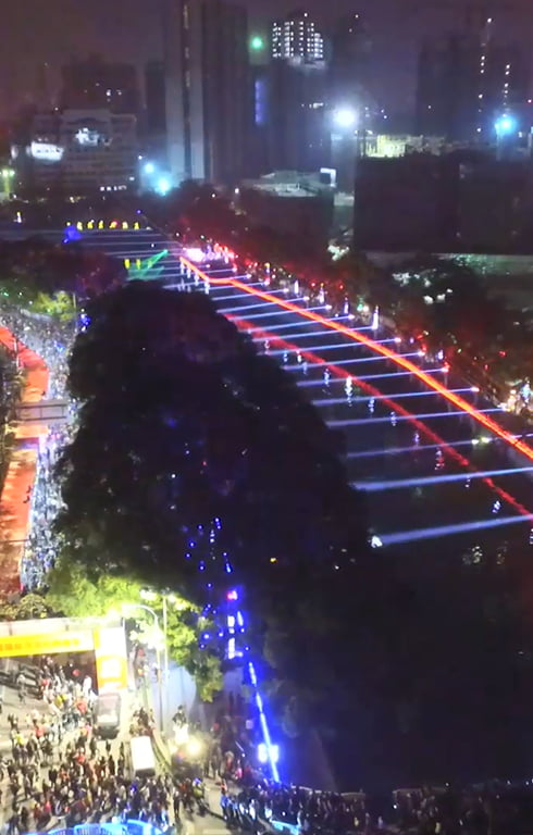 彩色汾江項目設計按照“一軸,兩帶,多點”的燈光創意理念,把規劃地段凝聚成一幅以剪紙、粵劇等佛山最具代表性的文化元素,結合現代、時尚、科技等元素,展現出一幅豐富立體的燈光巨卷。